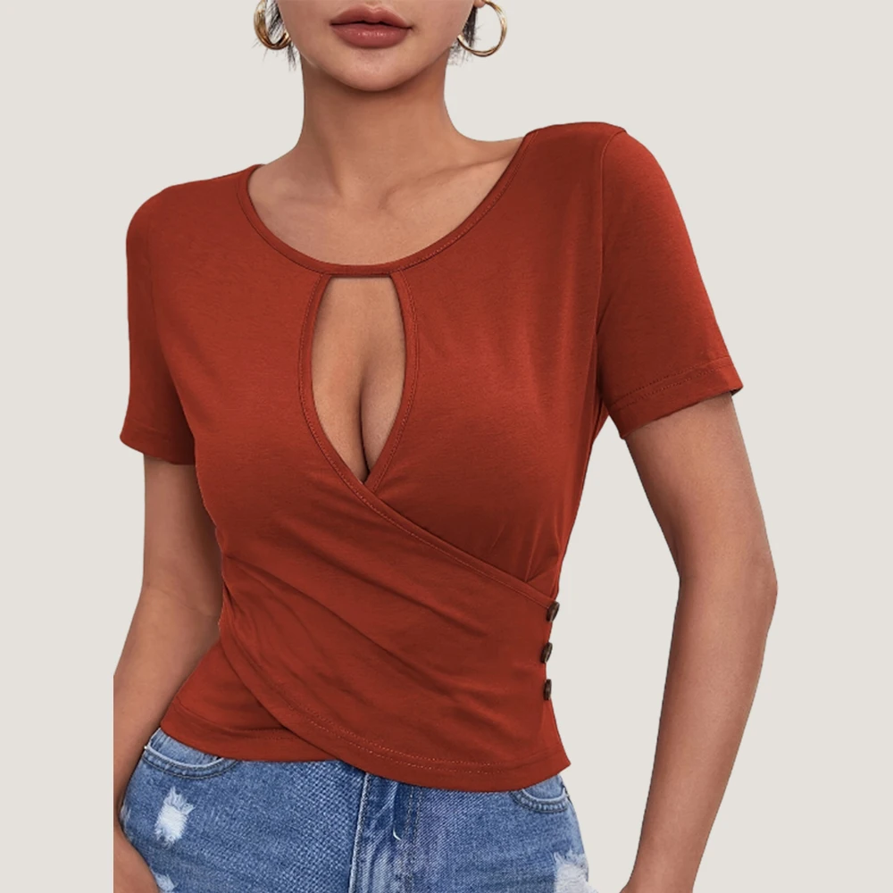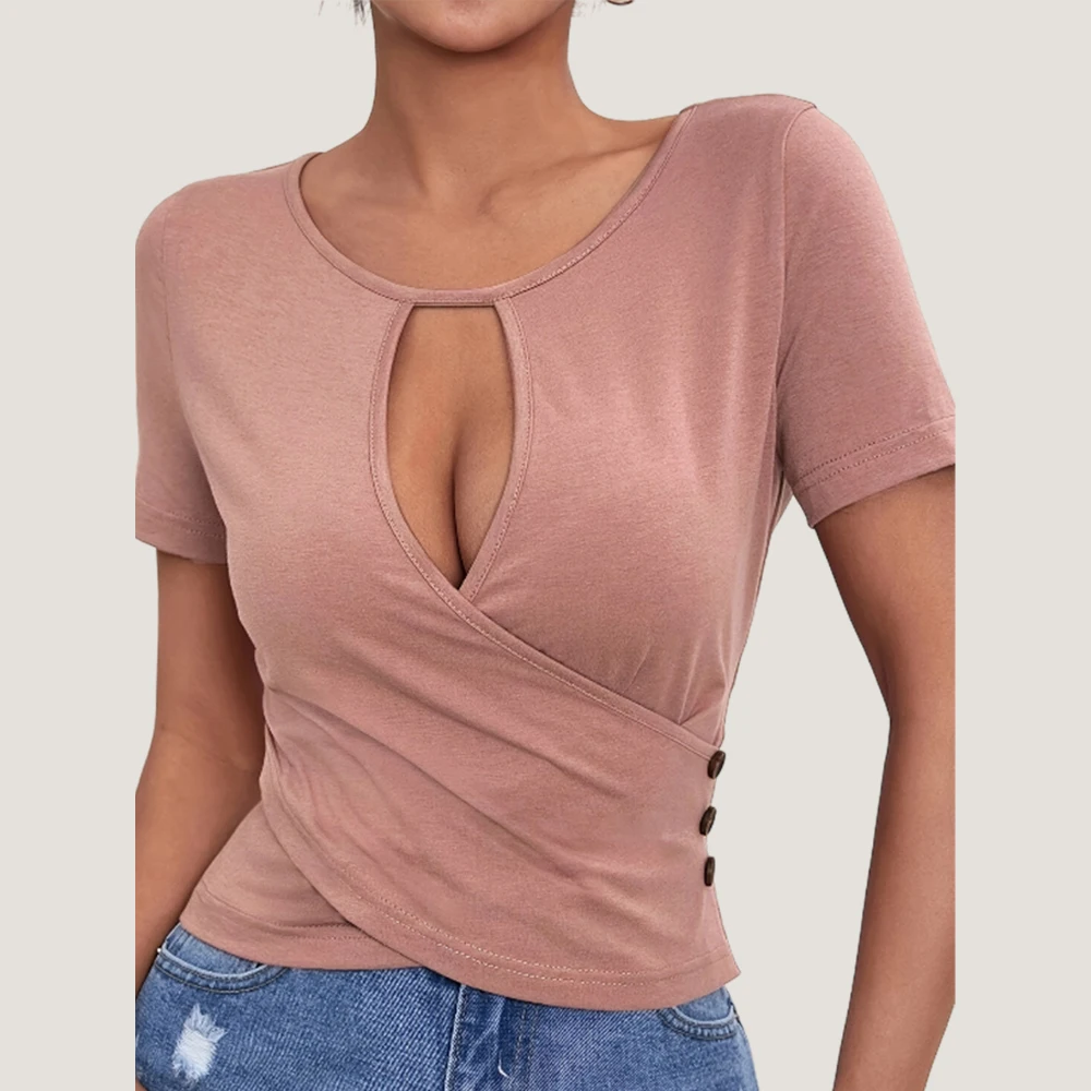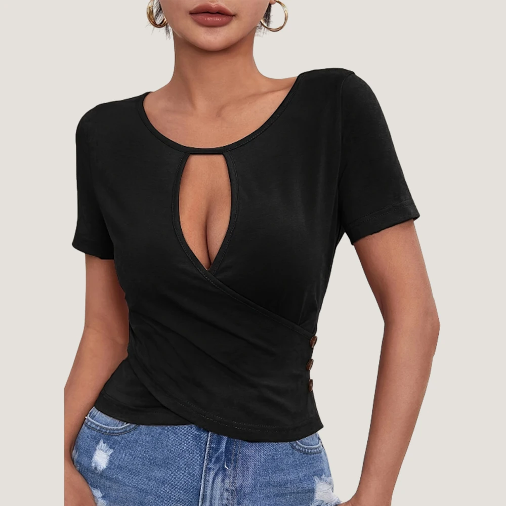 Hots Girl Sexy Crop Tops for Women Clothing 2024 Summer Bodycon T-shirt Tee Fashion Korean Casual Solid Blouses Pullover M L