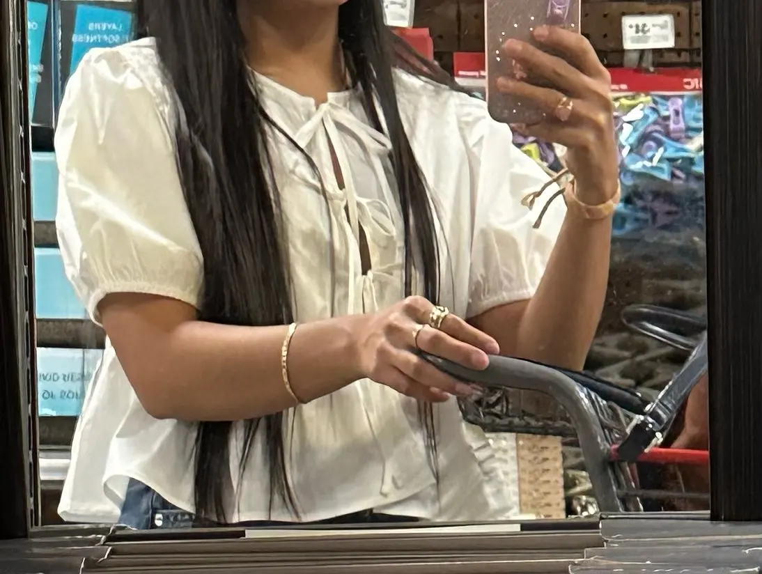 2 reviews for White Crop Top Women Black Ruffle Short Puff Sleeve Blouse Female Bow Tied Summer Blouses Woman 2024 Ruched Cute Tops