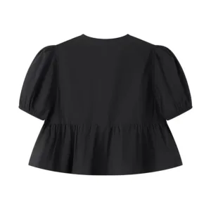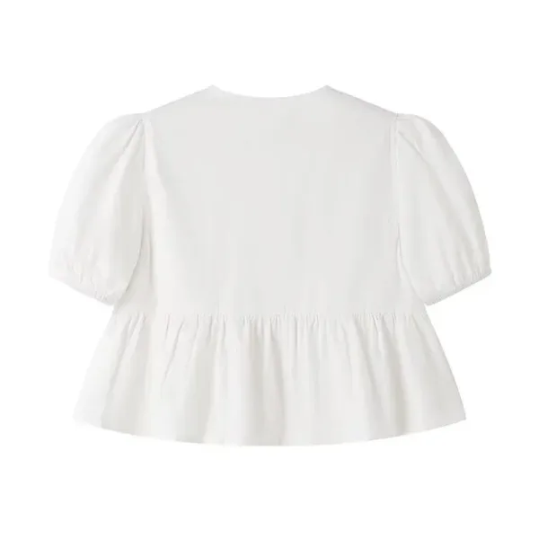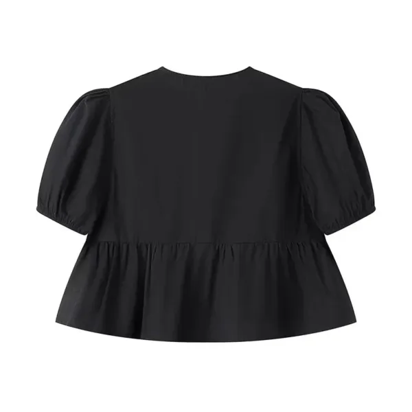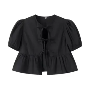 2 reviews for White Crop Top Women Black Ruffle Short Puff Sleeve Blouse Female Bow Tied Summer Blouses Woman 2024 Ruched Cute Tops